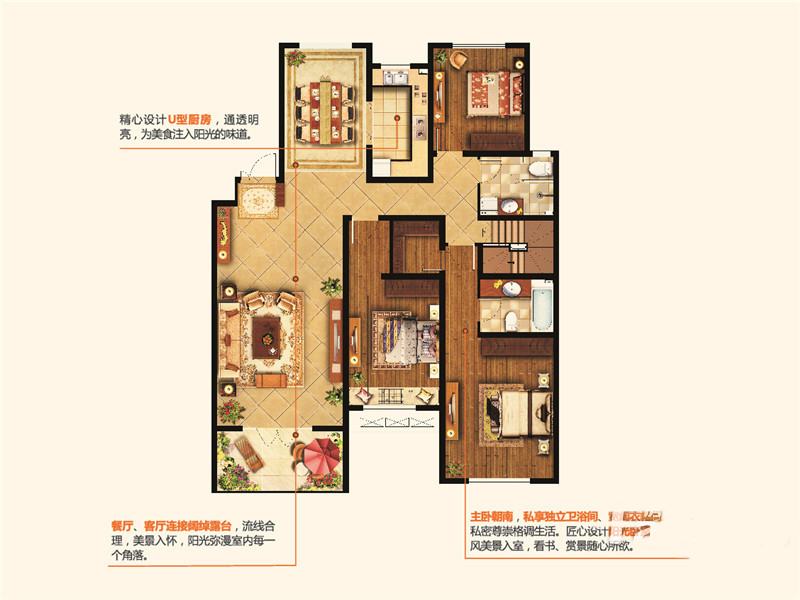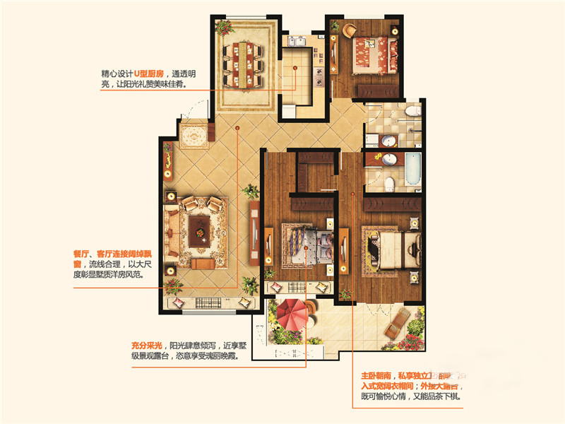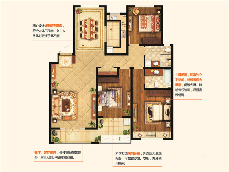 各个空间户型方正,方便室内家具布置;全明户型,各部分空间均有窗,可保证整体空间采光和通风,居住舒适度好;整体空间布局合理,能够保证动静分离和居室通风,方便使用;卧室厨卫等各个功能区的面积大小都比较合理,居住体验便利,整体舒适度高;公摊高于15%且低于25%,符合住宅公摊正常范围。