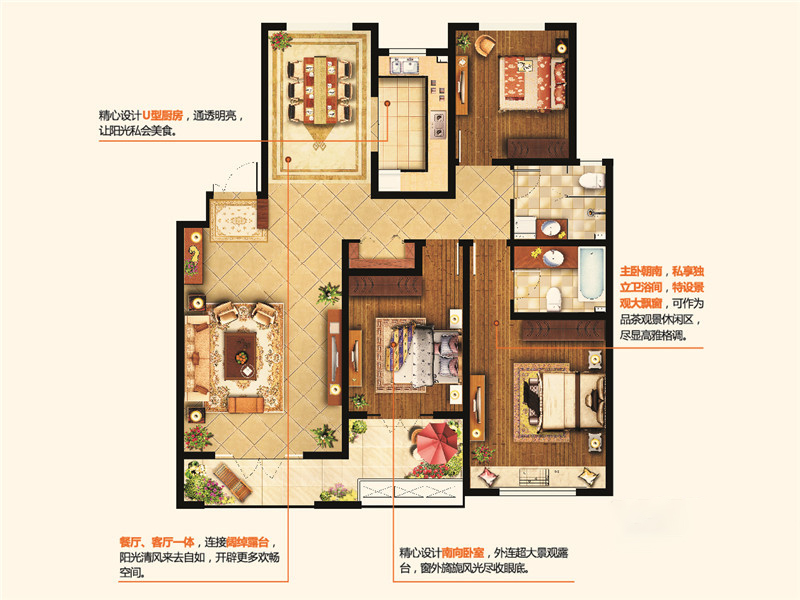 整体户型方正,活动区域开阔,居住舒适度高;全明通透户型,居住舒适度较高,整个空间采光充足,利于后期居住;整体空间布局合理,能够保证动静分离和居室通风,方便使用;客厅、卧室、卫生间和厨房等主要功能间的尺寸以及比例适中,有利于采光和通风,居住起来舒适、方便;公摊高于15%且低于25%,符合住宅公摊正常范