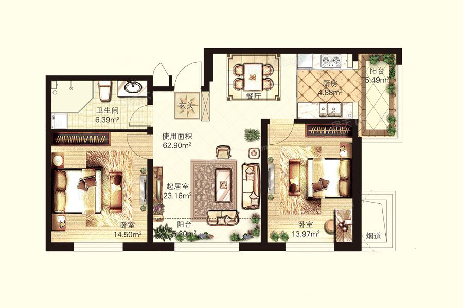 宝宇天邑澜湾2室2厅1厨2卫 总价待定