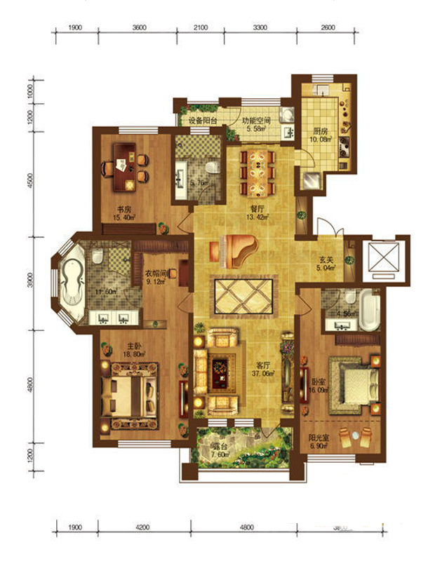 辰能溪树河谷4室3厅1厨4卫 总价待定