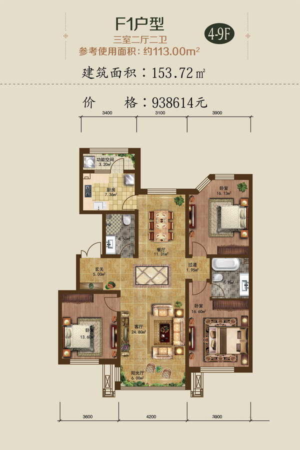 辰能溪树河谷3室2厅1厨3卫 4.2万起