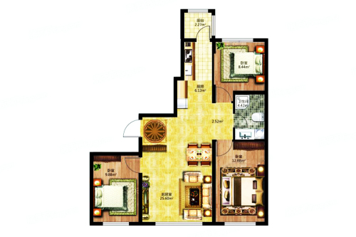 各个空间户型方正,方便室内家具布置;可通过加装排风机改善通风除湿;整个户型空间布局合理,做到了干湿分离、动静分离,方便后期生活;客厅、卧室、卫生间和厨房等主要功能间的尺寸以及比例适中,有利于采光和通风,居住起来舒适、方便;符合住宅公摊正常范围。