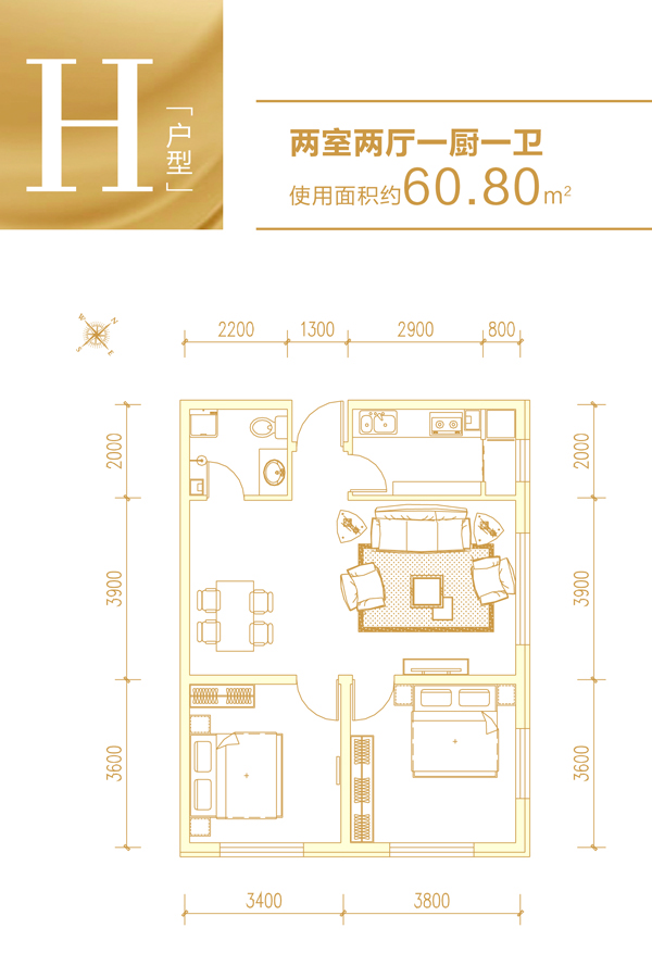 环贸公馆2室2厅1厨1卫 总价待定
