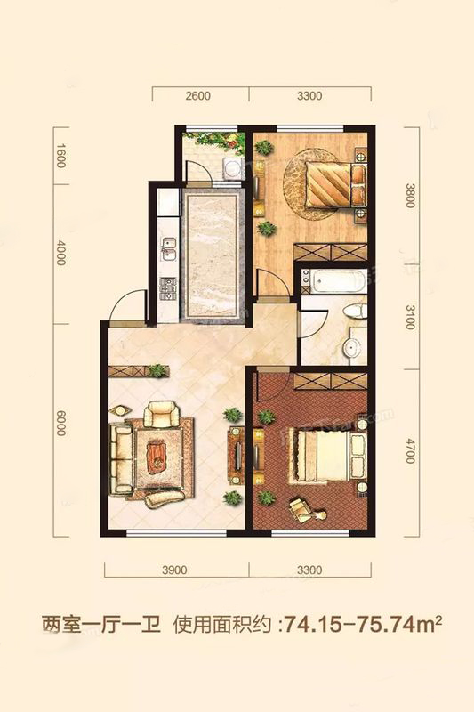 桐楠格领誉2室1厅1厨1卫 总价待定
