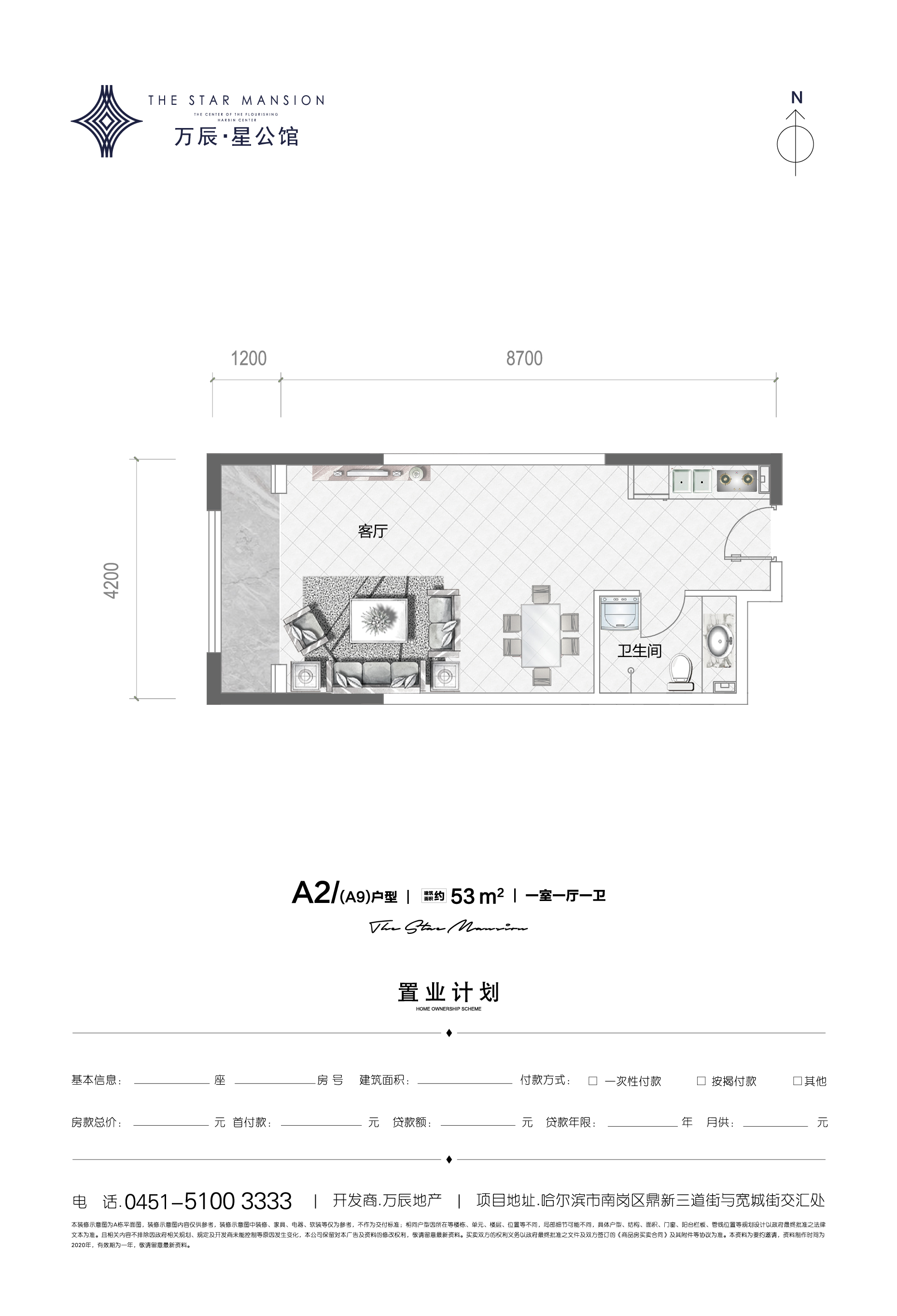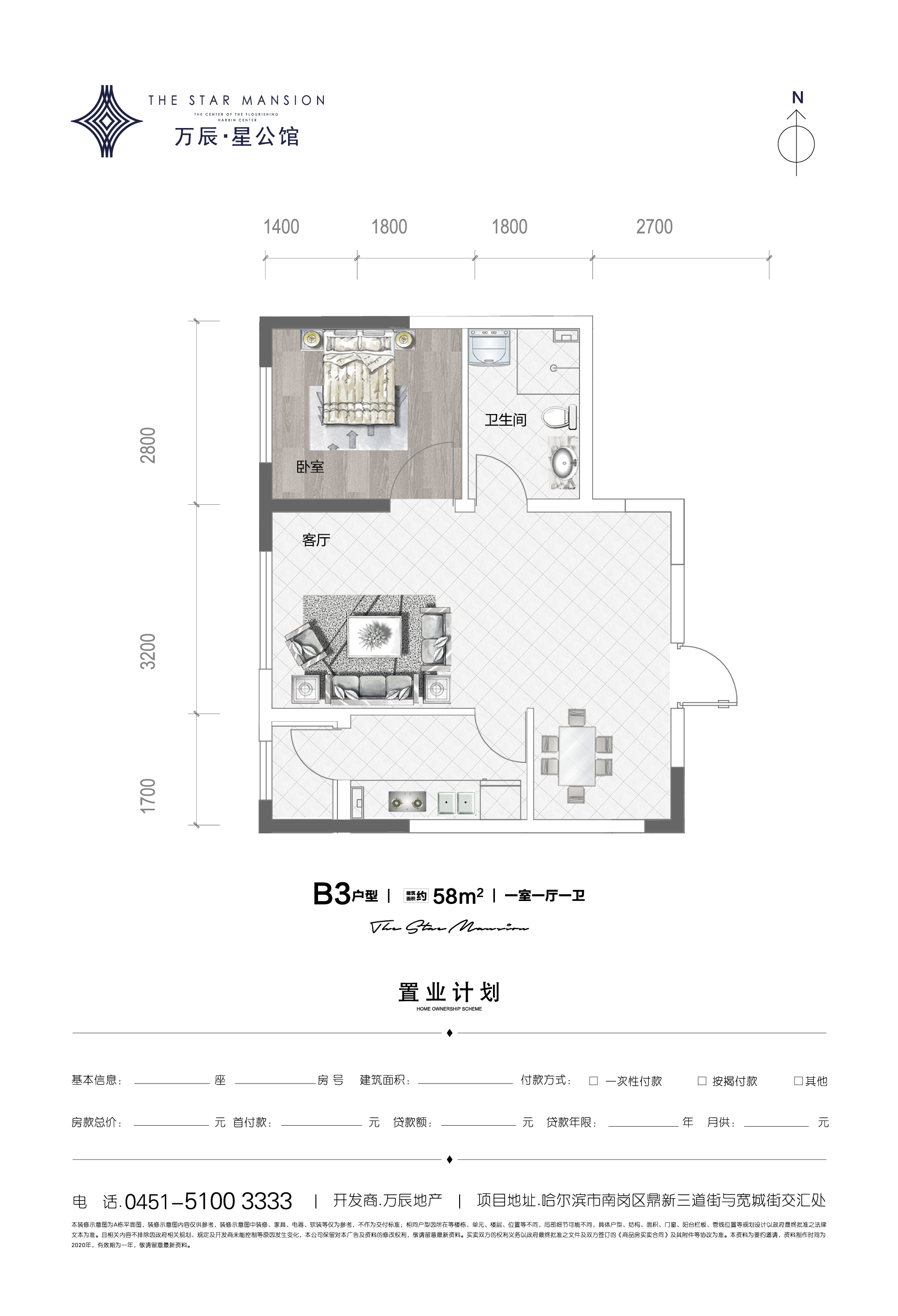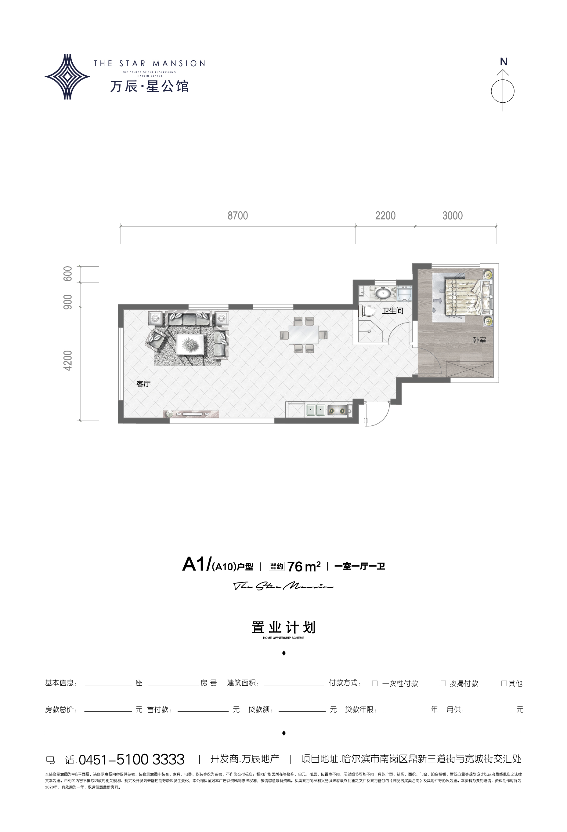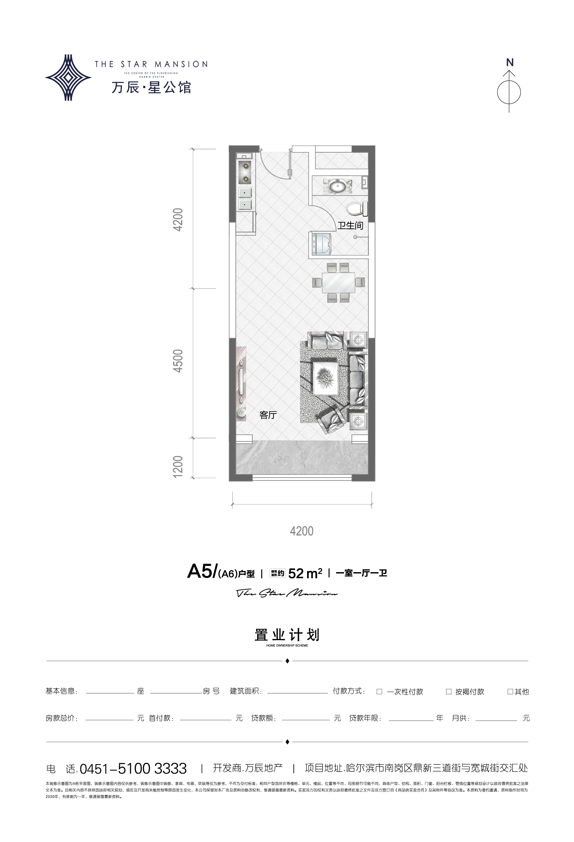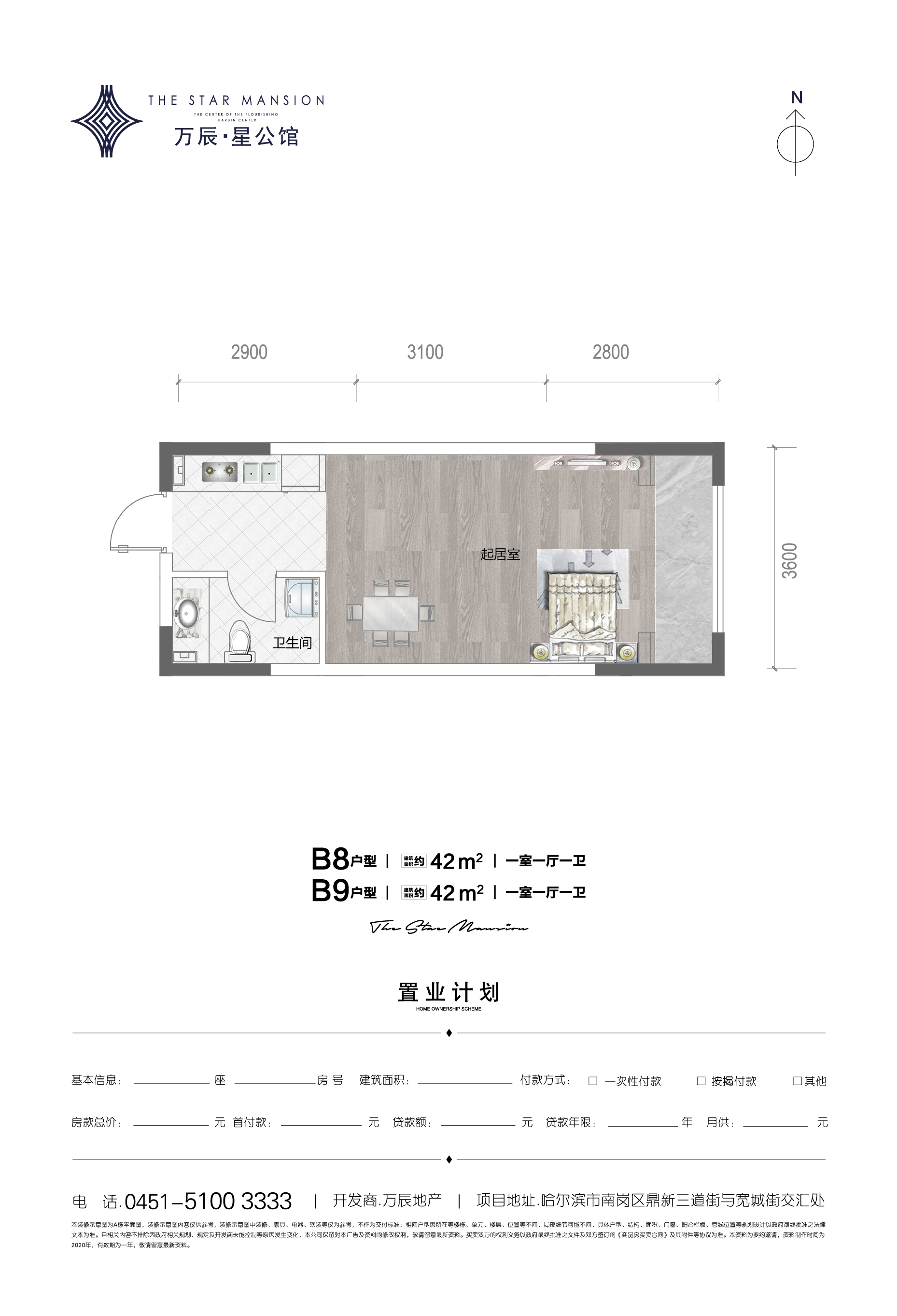 万辰星公馆1室1厅1厨1卫 总价待定