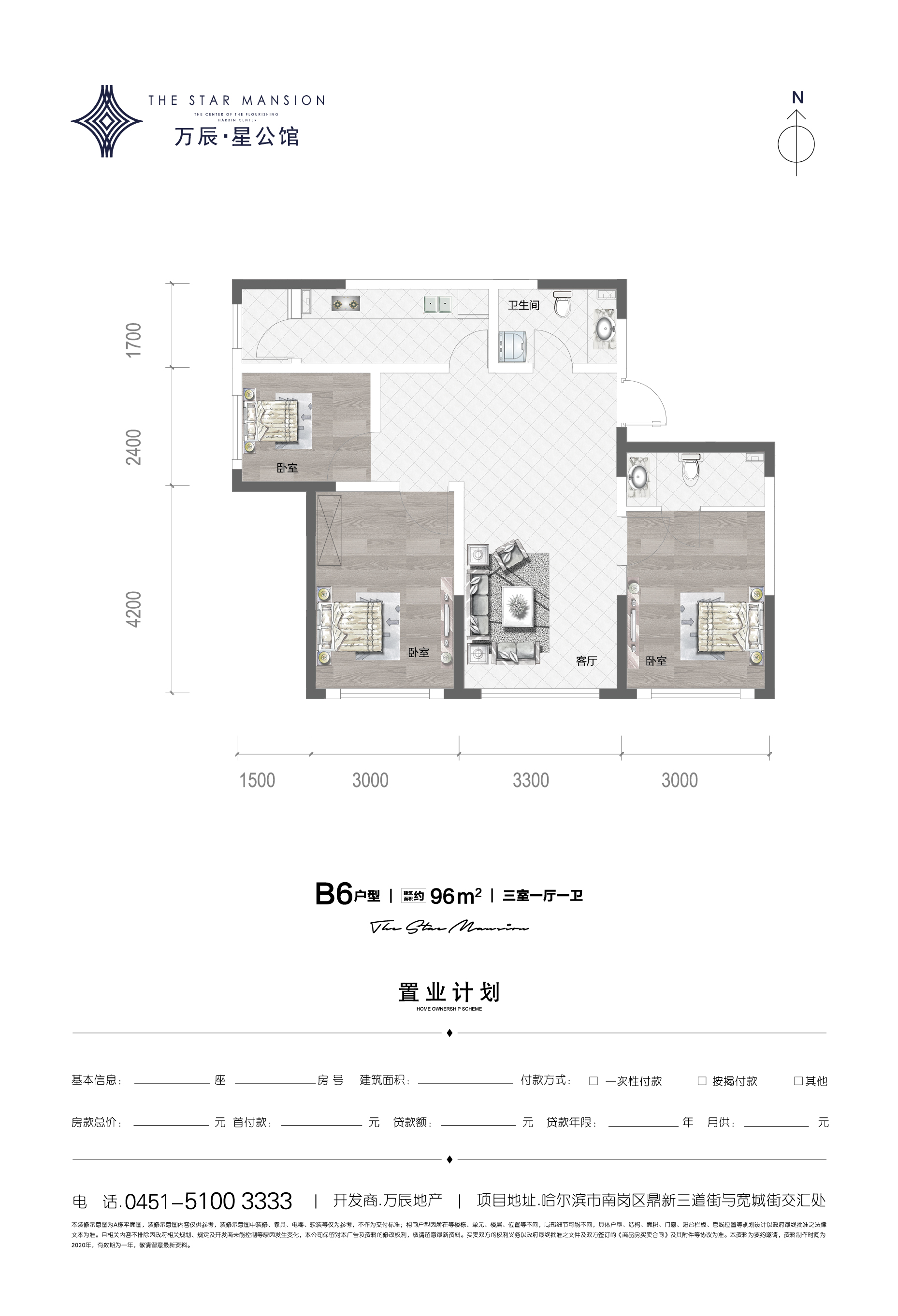 万辰星公馆3室1厅1厨1卫 总价待定