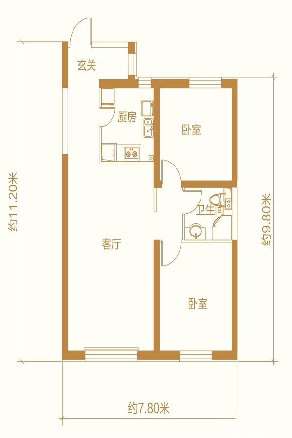 万达城2室1厅1厨1卫 总价待定