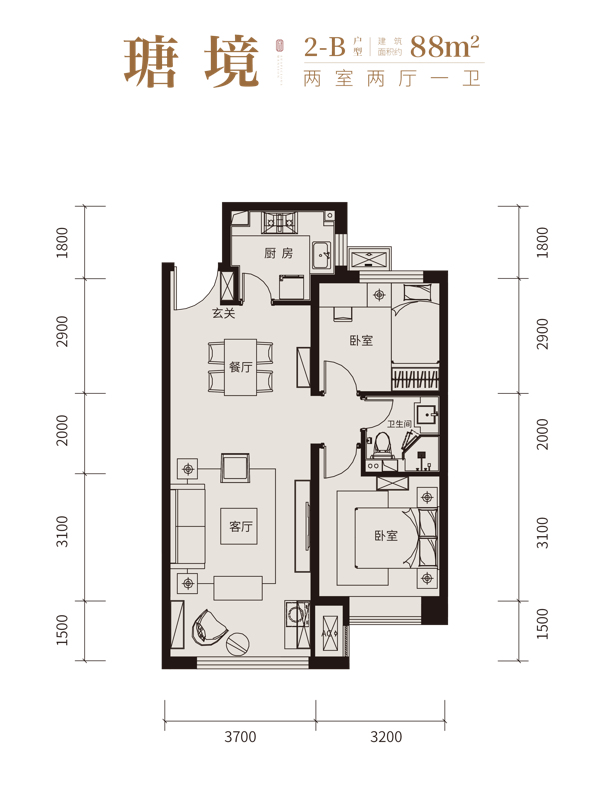 优势: 1、南北通透:室内通风好,随时更换室内空气,冬暖夏凉,给家人更健康的居家环境 2、客厅开间宽:家电家具摆放不受局限,并且活动空间自如,同时采光和视野效果好,可以给家人提供更舒适的居住环境 3、2梯2户(一梯一户):人口密度低,居住体验好;电梯使用频率低,方便出行,节省等梯时间;电梯前室可以利