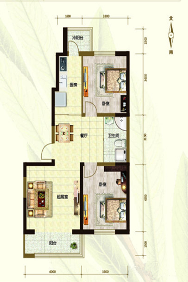 各个空间户型方正,后期空间利用率高;南北不通透的户型,后期居住时常开门通风换气即可;卫生间没有对外窗户,可通过加装排风机改善通风除湿;